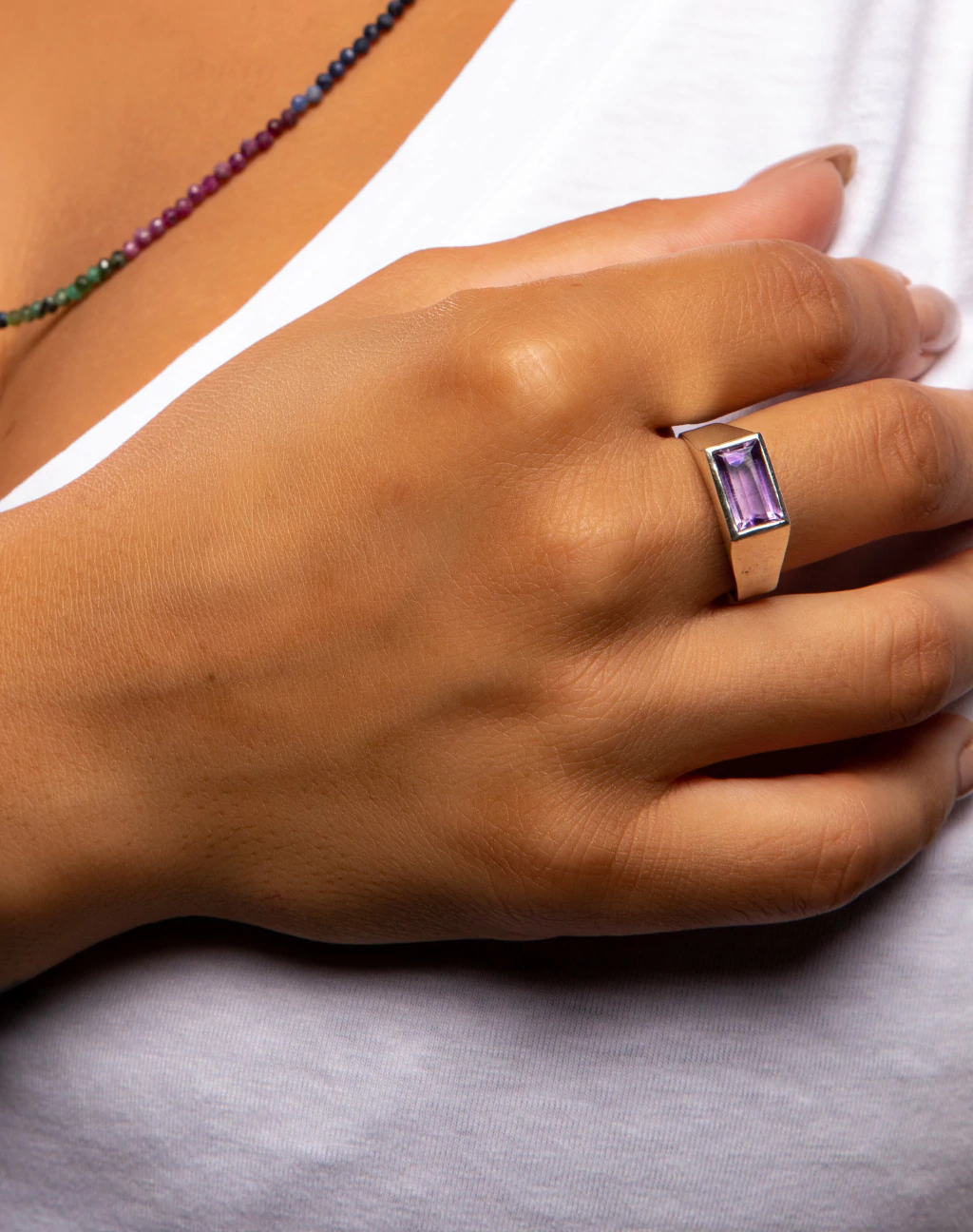 Produzido em Prata 925 com Pedra Natural Ametista roxa.