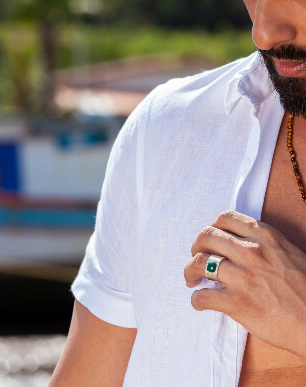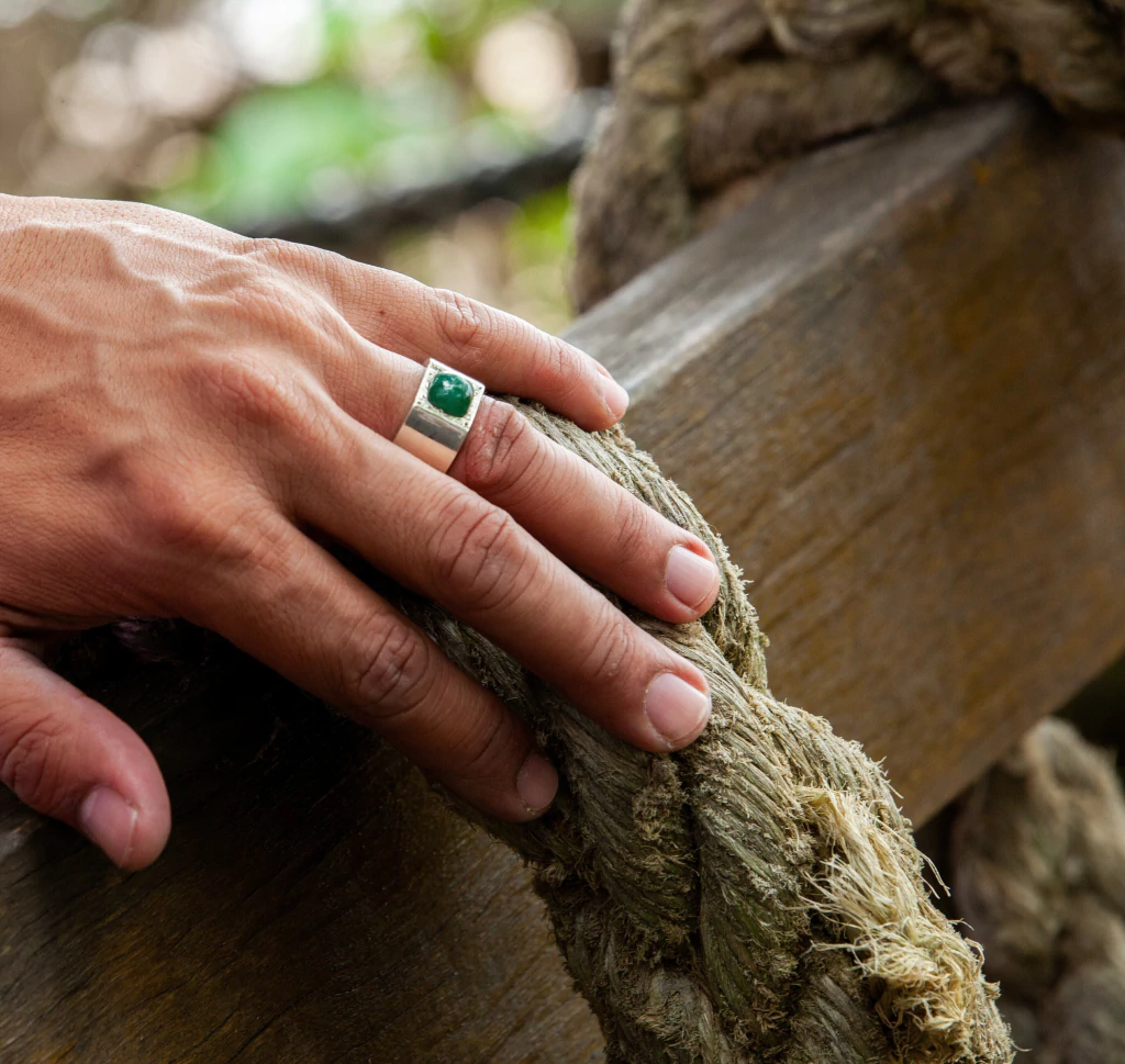 Produzido em Prata 925 e Pedra Natural Esmeralda.
