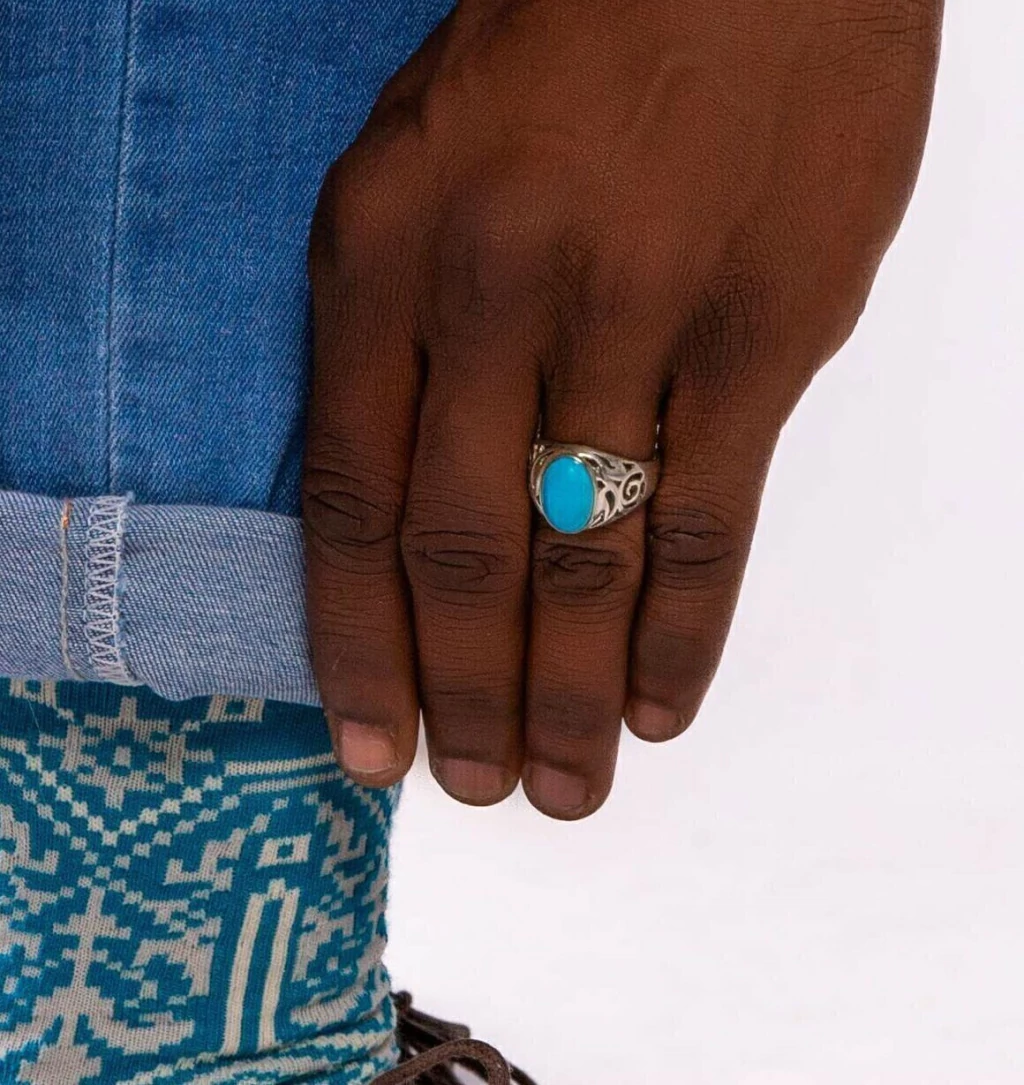 Produzido em Prata 925 com Pedra Natural Turquesa Howlita.