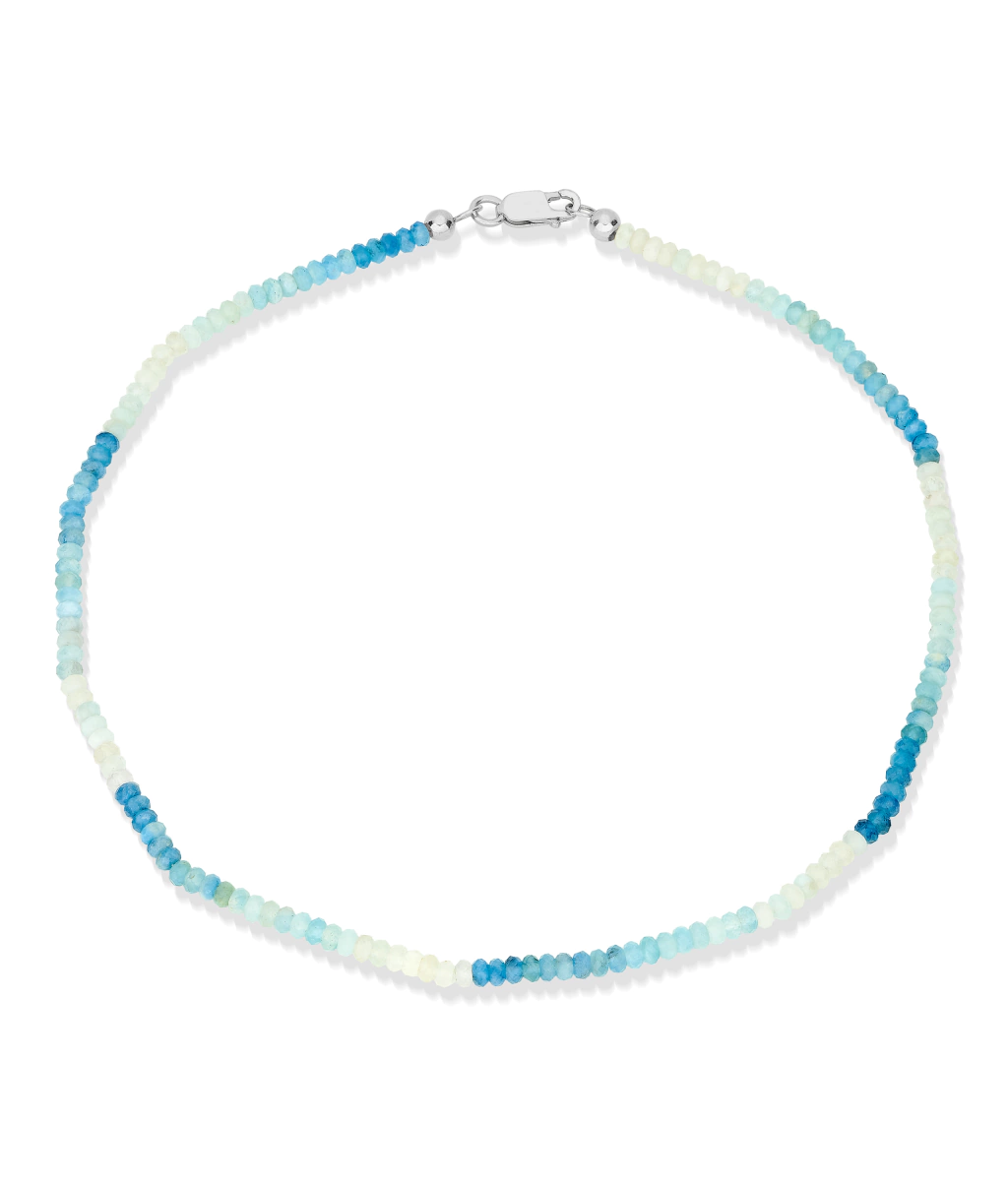 Produzido em fio de Pedra Água Marinha degradê 4 mm e fecho em Prata 925.