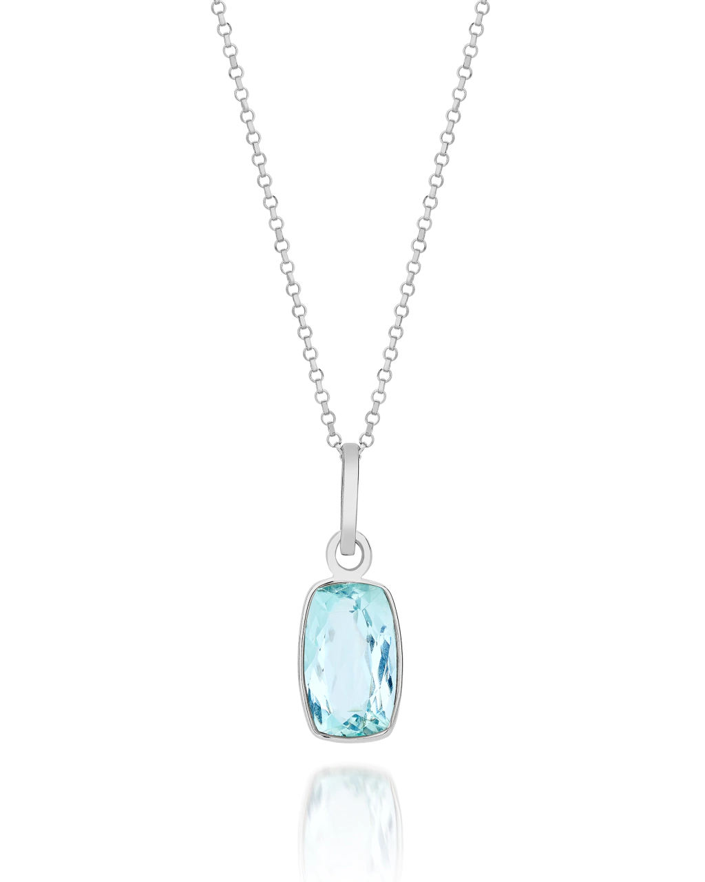 Produzido com Corrente Elo Português Thin em Ouro Branco e Pingente em Pedra Natural Água Marinha com lapidação especial e Ouro Branco.