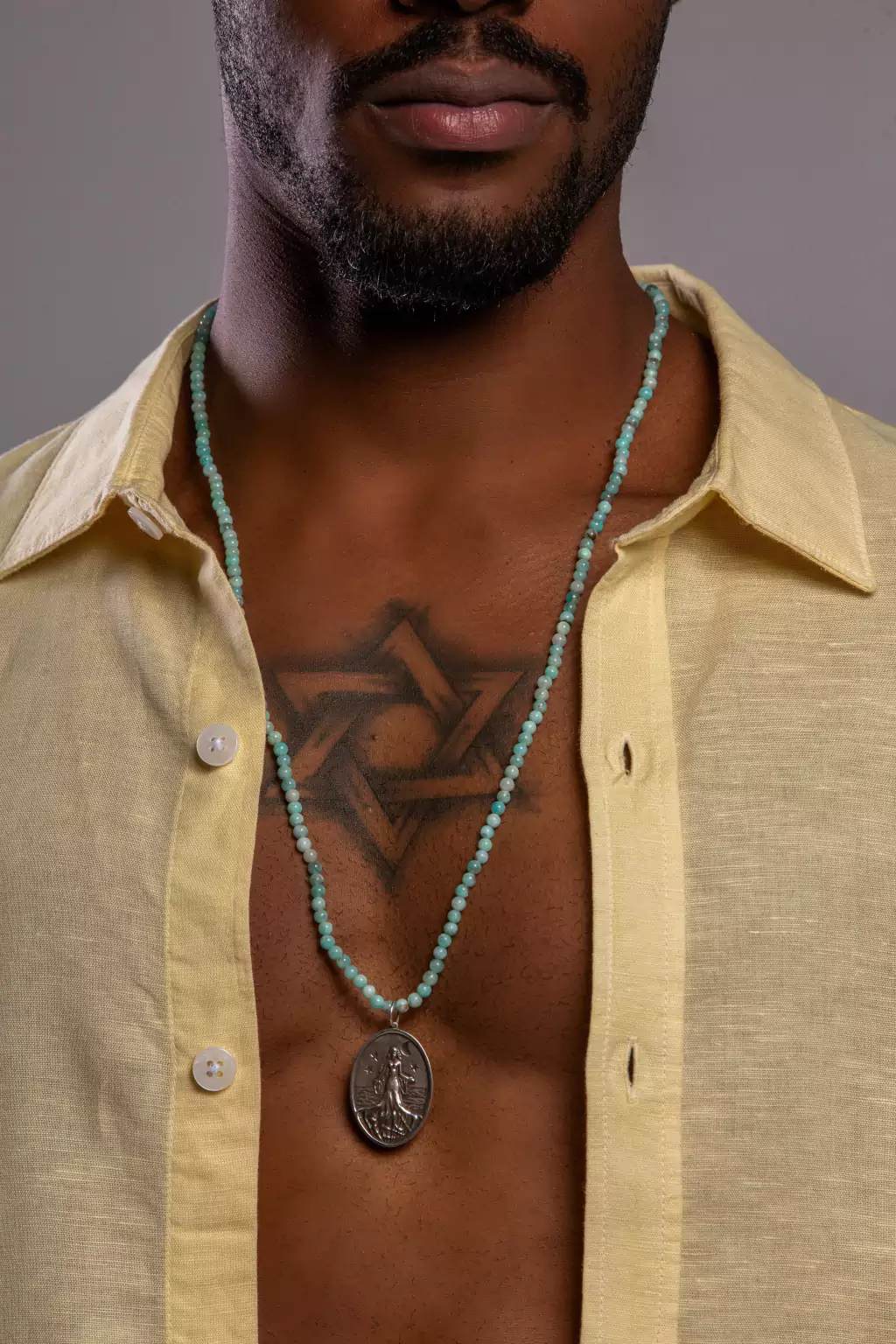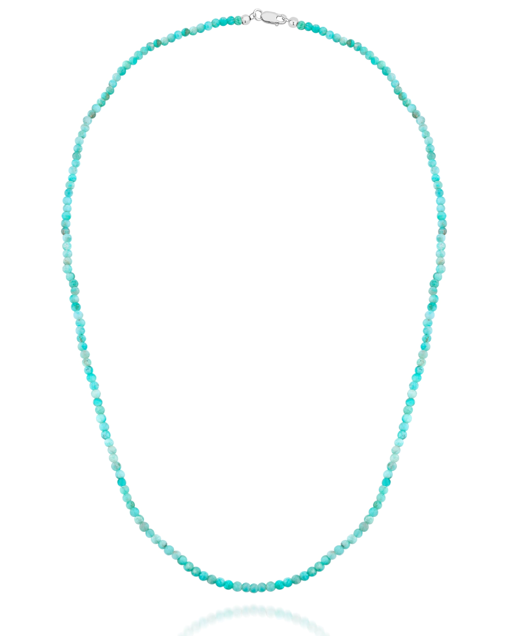 Produzido com Pedra Natural Amazonita bola 4 mm e fecho em Prata 925.