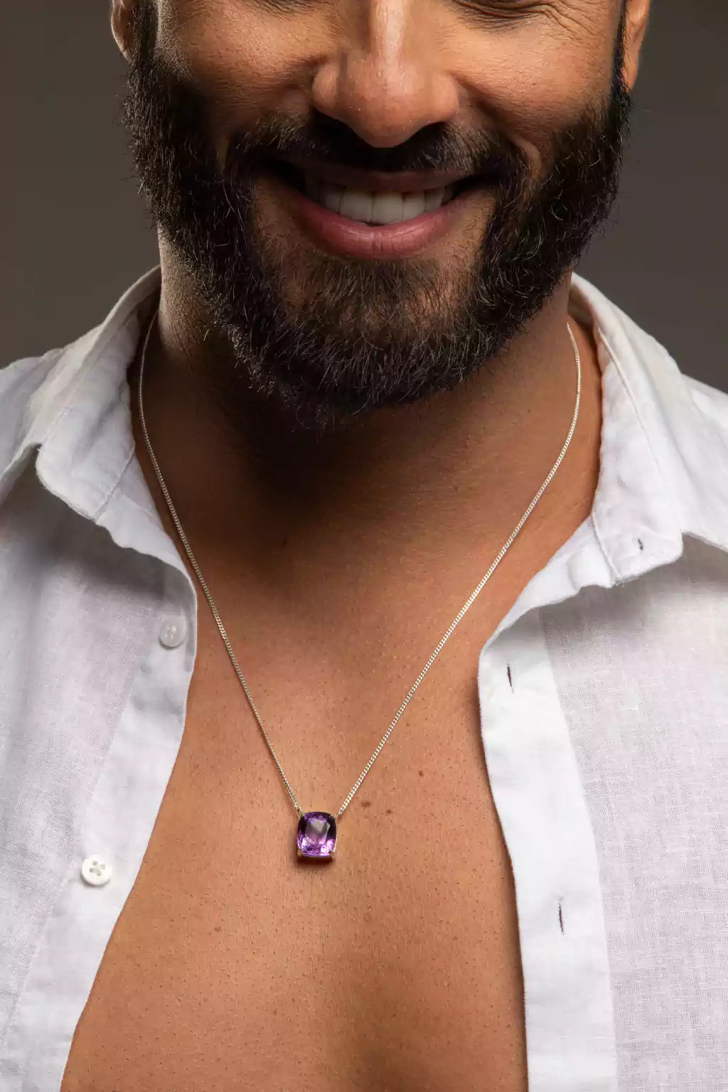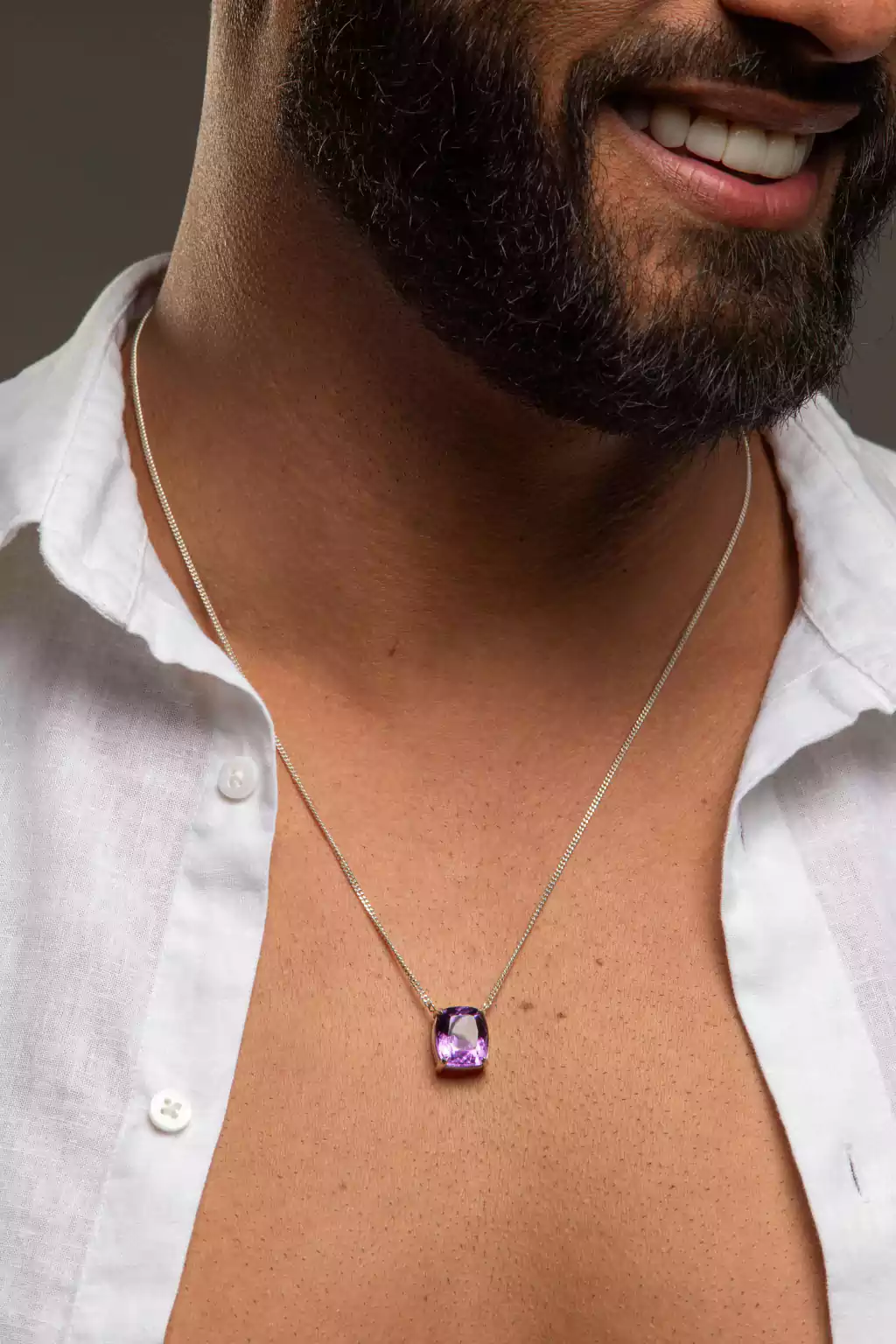 Produzido com Corrente Grumet em Prata 925 e Pedra Natural Ametista com lapidação especial.