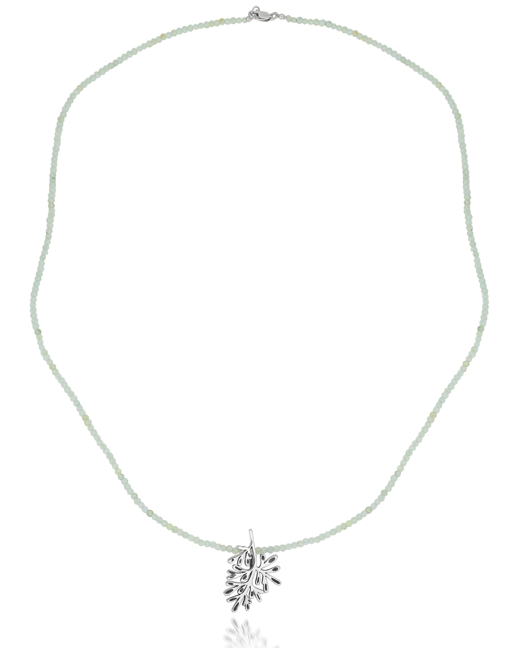 Produzido em fio de Pedra Natural Peridoto 2mm e Pingente Arruda e fecho em Prata 925.