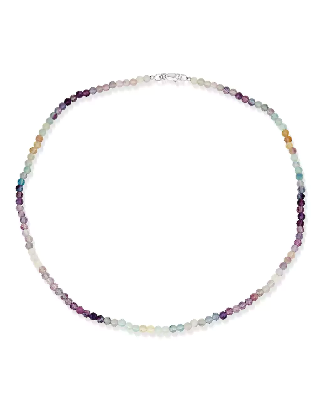 Produzido em fio de Pedra Natural Fluorita facetada 3,4 mm e fecho em Prata 925.