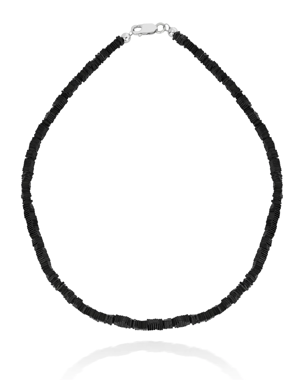 Produzido em Pedra Natural Hematita Preto e fecho em Prata 925.