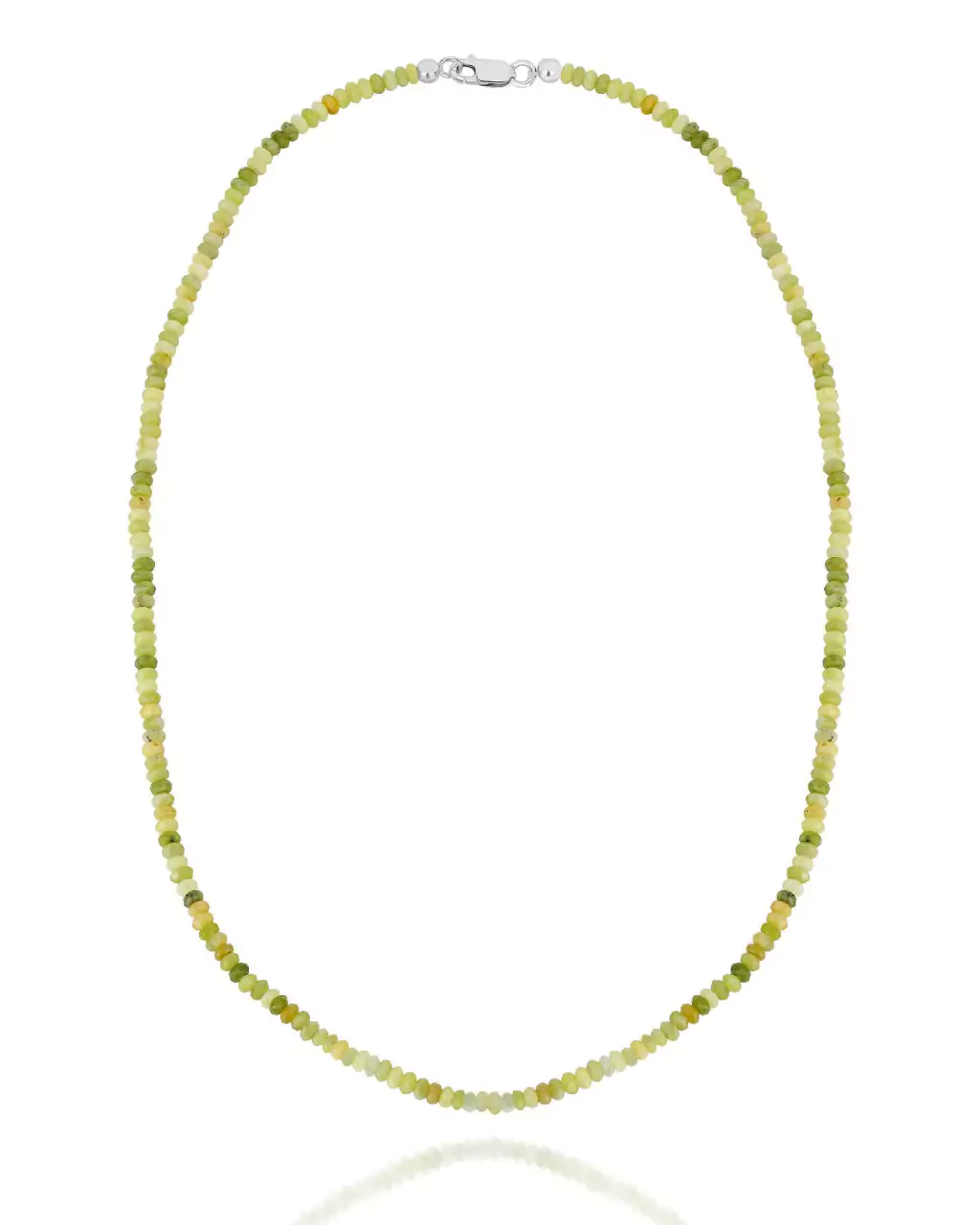 Produzido em fio de Pedra Natural Peridoto 3,5 mm facetada no formato disco com fecho em Prata 925.