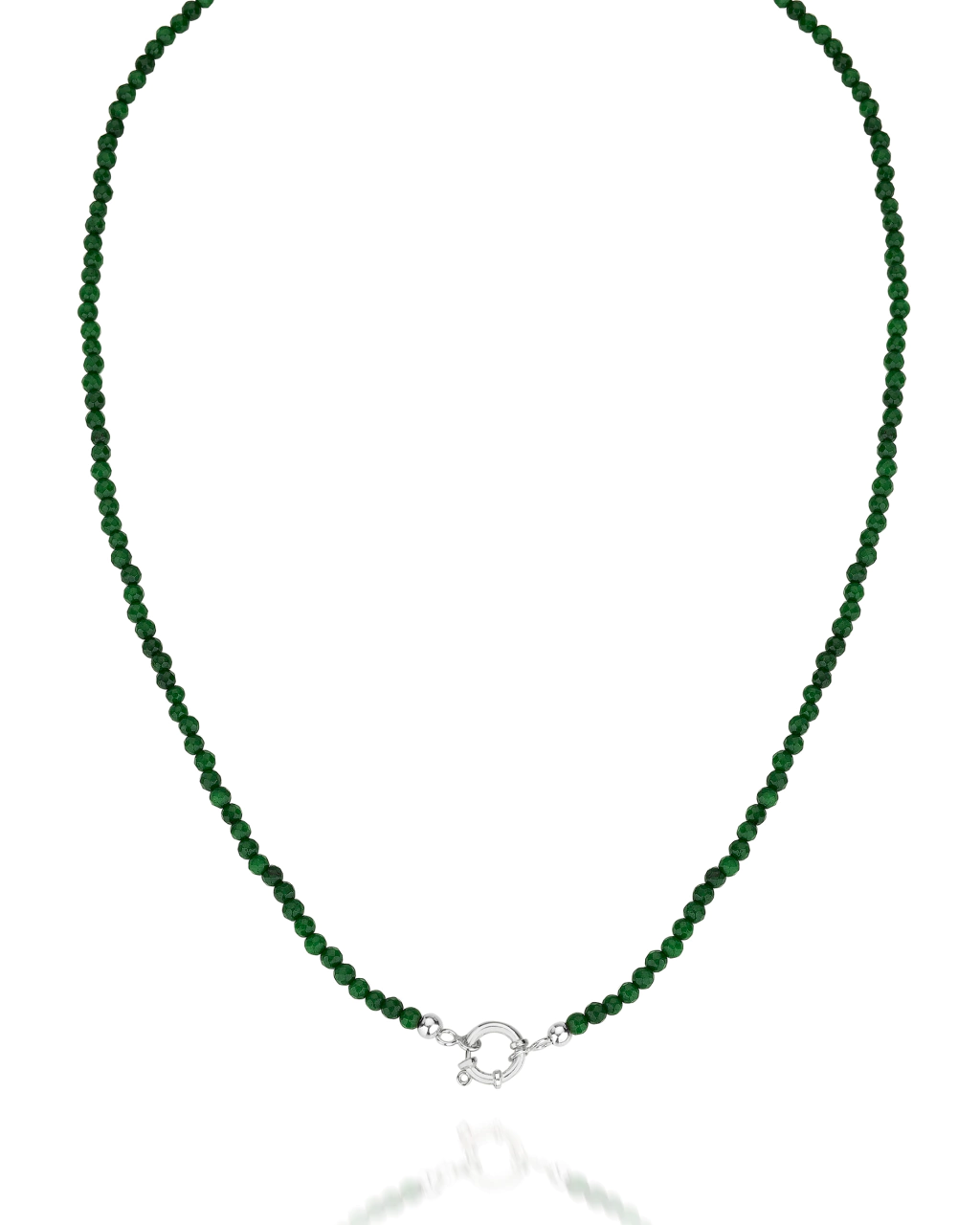Produzido com Pedra Natural Jade Verde bola facetada 3,5 mm e fecho boia em Prata 925.