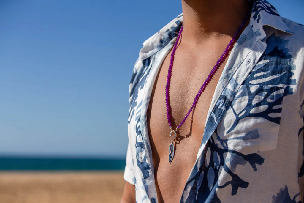 Produzido em Pedra Natural Jade Roxo bola 5 mm e fecho bóia em Prata 925.