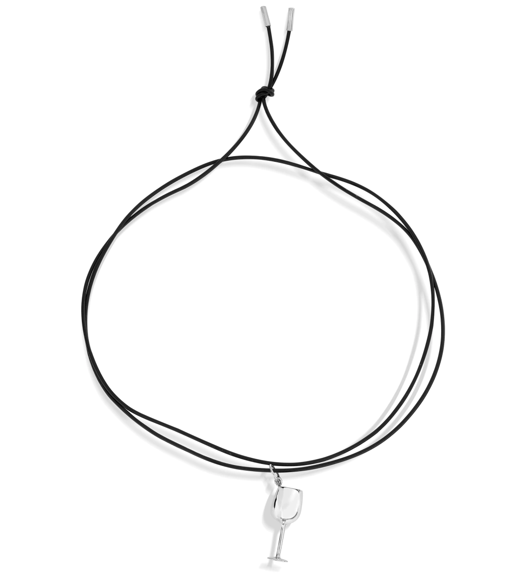 Colar Couro legítimo com ponteiras em Prata 925 e Pingente Taça Wine Prata 925.
