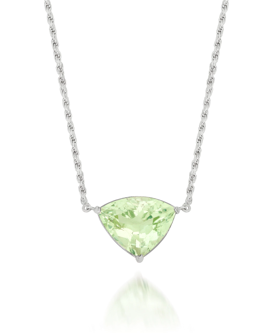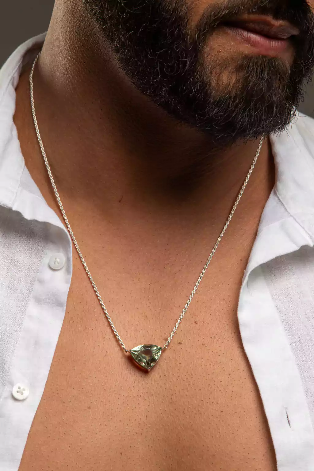 Produzido com Corrente Elo Trançado em Prata 925 e Pedra Natural Prasiolita formato triangular com lapidação especial.