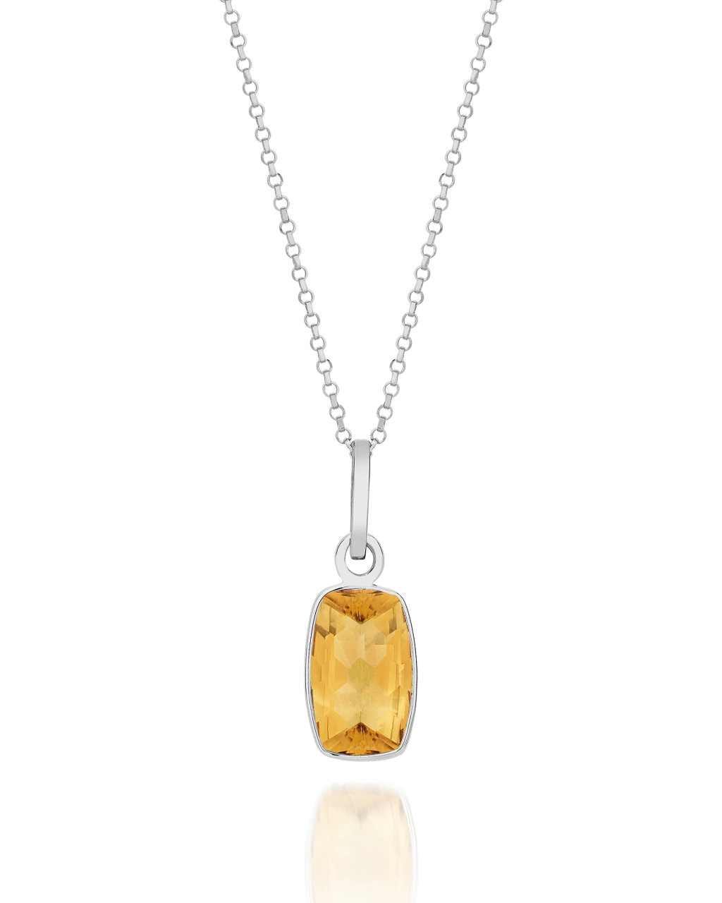 Produzido com Corrente Elo Português Thin em Ouro Branco e Pingente em Pedra Natural Topázio Imperial com lapidação especial e Ouro Branco.