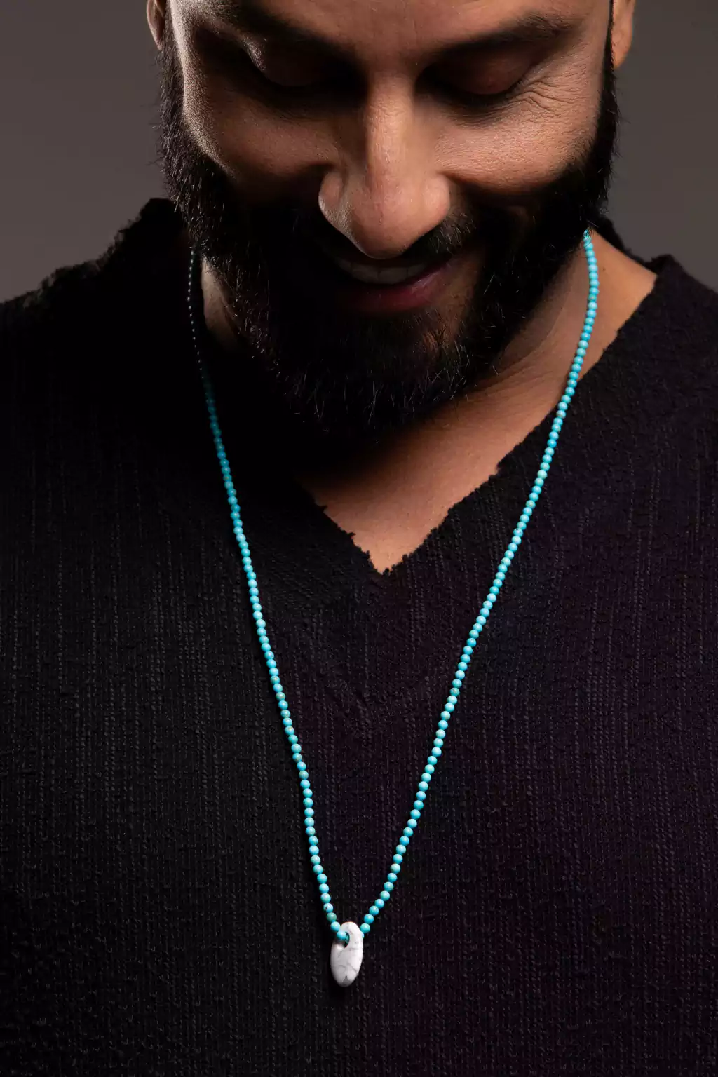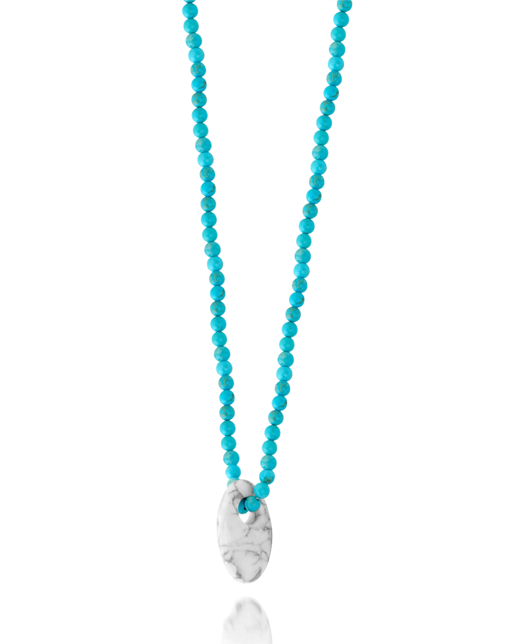 Produzido em Pedra Turquesa bola 3mm com Pingente em Pedra Howlita e fecho em Prata 925.