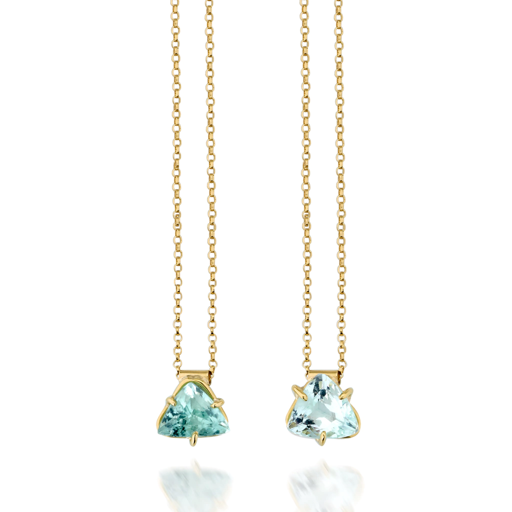 Produzido em Corrente Elo Portugês Ouro 18k com Pedra Natural triangular Água Marinha.