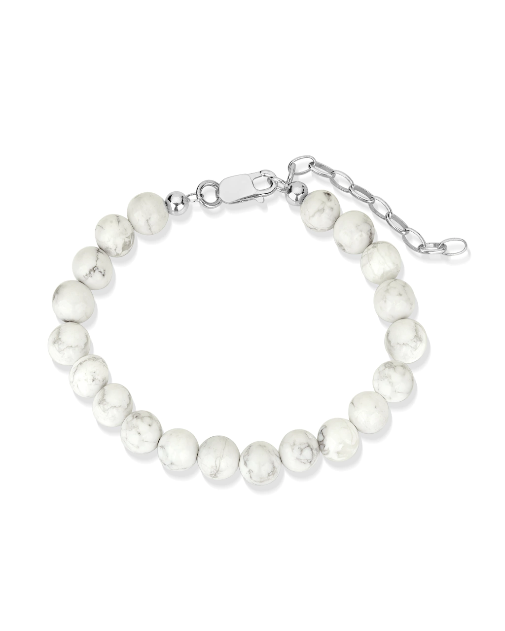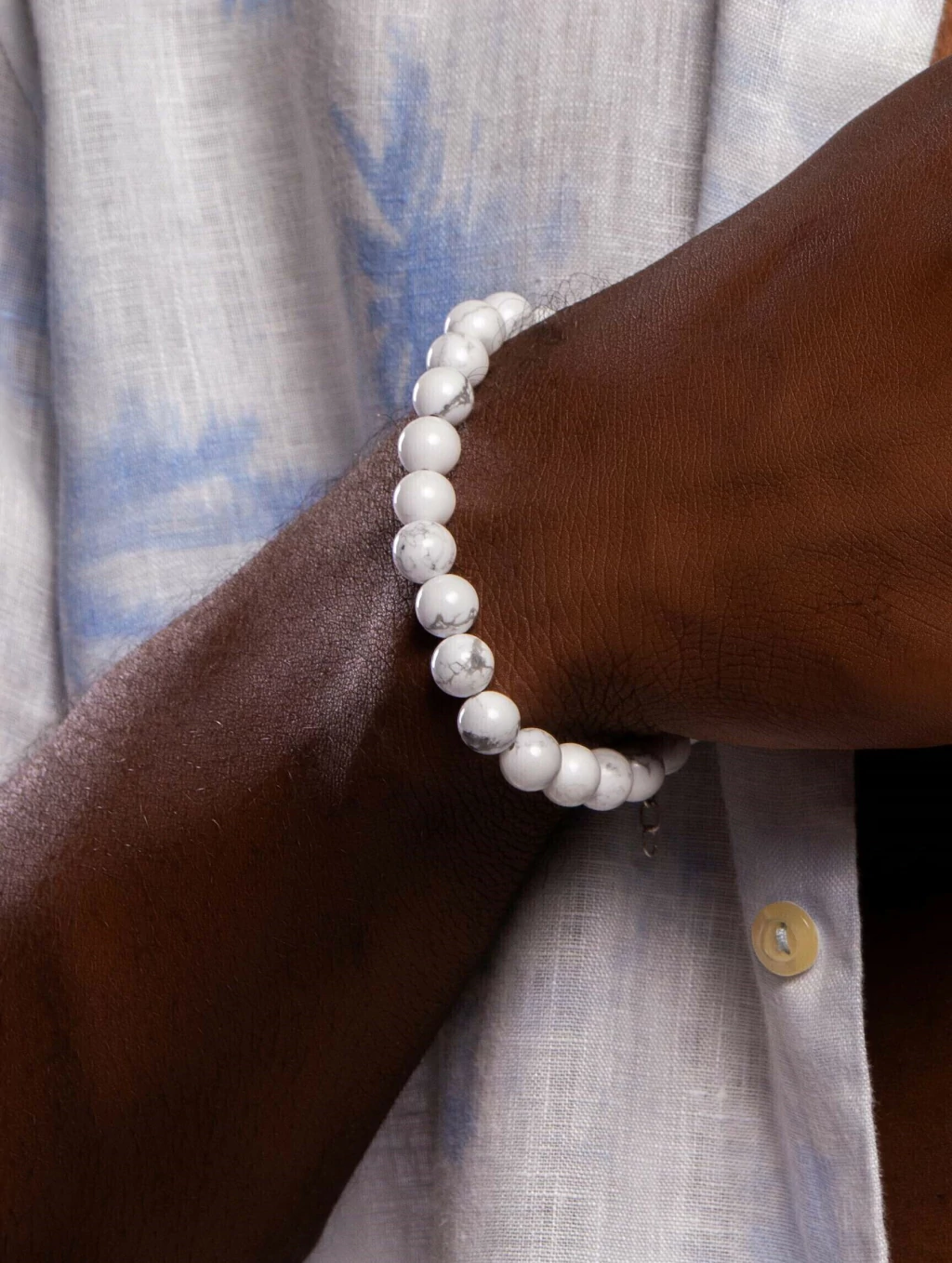 Produzida em Pedra Natural Howlita 8mm e fecho em Prata 925.