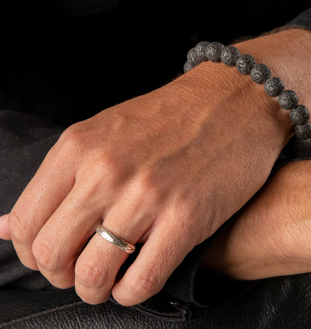 Produzida em Pedra Lava Vulcânica 10mm e Prata 925