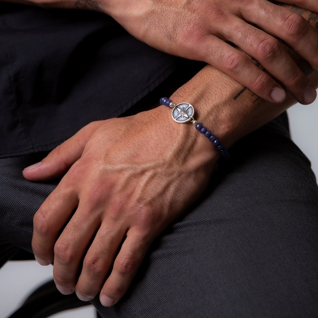 Produzida em Prata 925 e Jades 6mm em tom azul petróleo.