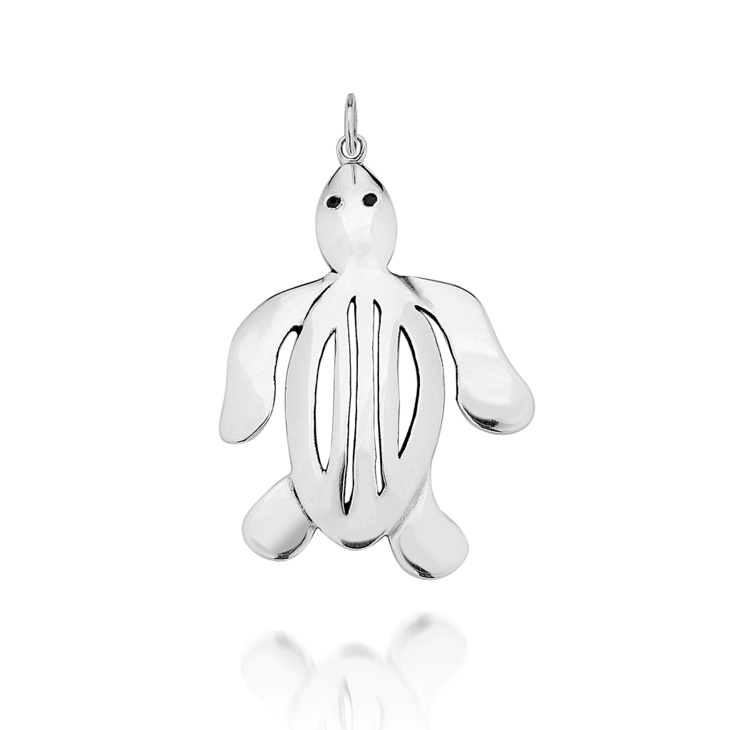 Tartaruga em Prata 925 com olho cravejado em Perdra Natural Safira.